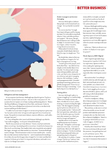 the bigger, strategic ones that needed my attention.” Swinson-Bullough nities to delegate. The key is making the pressure, they pull together and