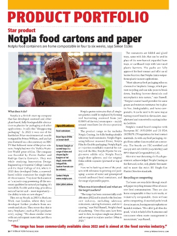 They set up Notpla in 2019 in Hackney able since 2022 and is aimed at the food ser- industrially compostable. Even without
