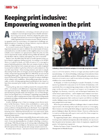 place in the first place. Print is often overlooked as a career path, While the print industry still faces challenges when it comes to female